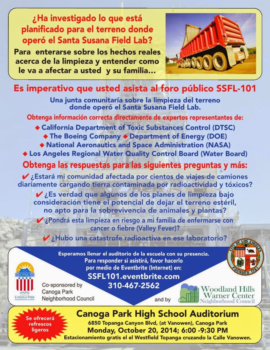 Corinne Ho, Chair of the Canoga Park Neighborhood Council stated, “We are one of the communities affected by the future SSFL cleanup. We need to be educated about this issue so we can make informed decisions that will protect the public’s health.”
