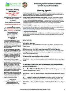 WHWCNC C3 Agenda 01-23-2023 Jan 20, 2023 Community Communications Committee Agenda for January 23, 2023